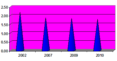 · In 2009, the fertility rate fell further to 1.85; and