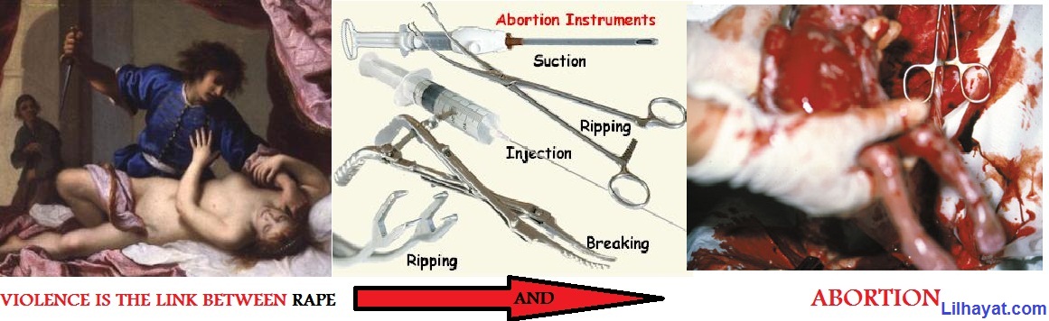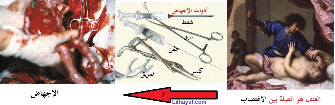 والعنف، وبالإجهاض المجهض يفتح رحم الأم بالقوت والعنف يمزق أحشاء الأم